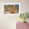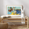 ‘In Keverburg gonsde het van de insecten. Ze hadden het druk. Heel erg druk. Want de jaarlijkse wedstrijd voor zespotigen kwam er weer aan.’ Hoogwaardig drukwerk, intense kleuren en fluweelzacht textuurpapier dat je wil aaien: op deze unieke luxe artprint met papieren illustratie uit het boek ‘Heel Keverburg kookt’ zie je iedere keer iets nieuws!