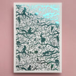 De oorspronkelijke illustratie werd door Geertje Aalders met de hand geknipt. Deze papercut is gelaserd uit een prachtig papier met een dynamisch, gedetailleerd effect.